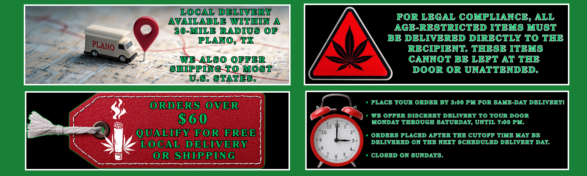 Dallas Delta Delivery is your go-to online CBD and hemp store based in Dallas, Texas. We specialize in high-quality CBD products, THCa flower, Delta-8, Delta-9, HHC, and hemp-derived wellness items. We proudly offer fast, local delivery within 20 miles of Plano, TX—including North Dallas, Richardson, Plano, McKinney, Garland, Irving, Princeton, Frisco, Carrollton, Allen, and surrounding areas. Whether you're shopping for CBD gummies, disposable vapes, cartridges, pet cbd, lotions, exotic snacks, tinctures, or hemp flower, our Dallas-based delivery service brings premium, lab-tested hemp products directly to your door. Enjoy same-day discreet CBD delivery and shop confidently with Dallas Delta Delivery—your trusted source for legal hemp and cannabis alternatives in the DFW area.
